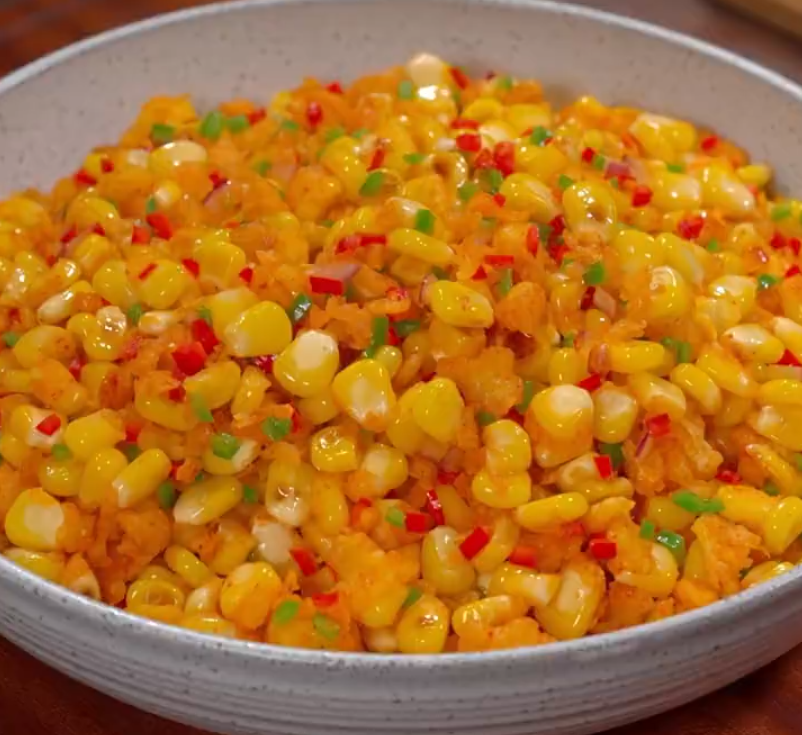 玉米、鸡蛋、蒜香椒盐粉、青红椒丁、洋葱丁