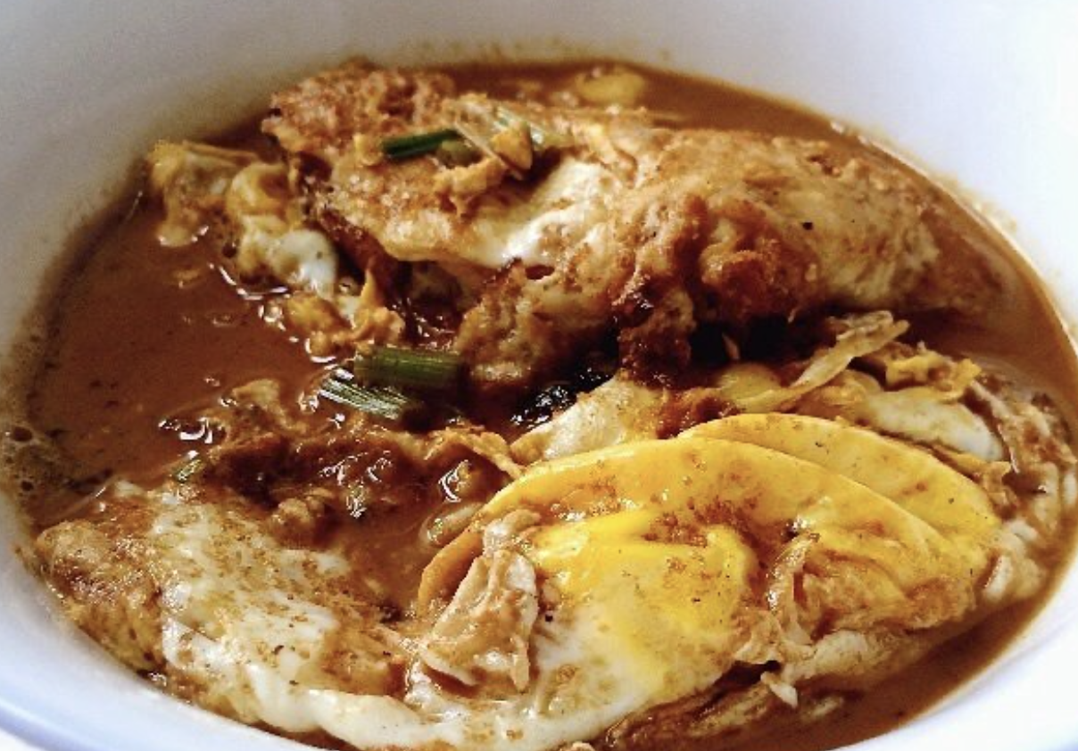 3⃣️起锅烧油,油热后先煎一个荷包蛋,不用煎得太熟,只要微微定型就可以盛出了;