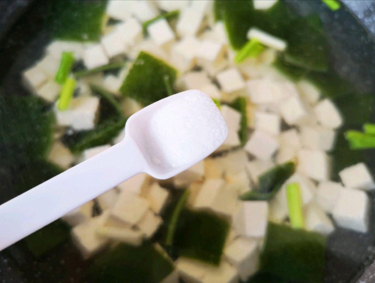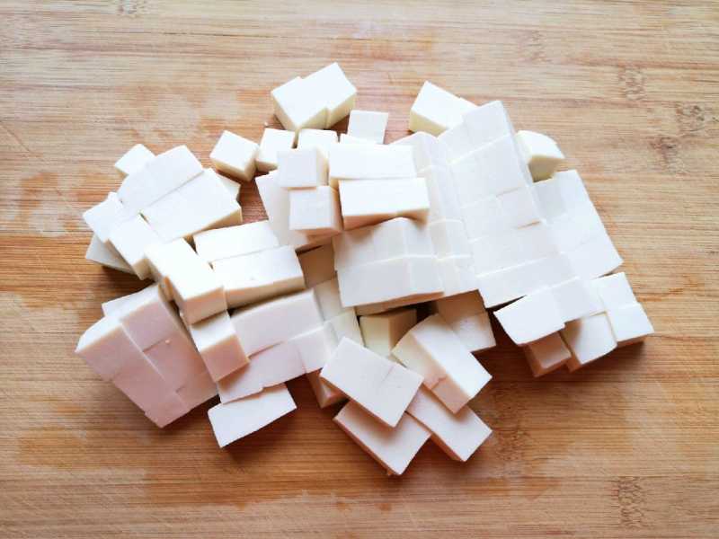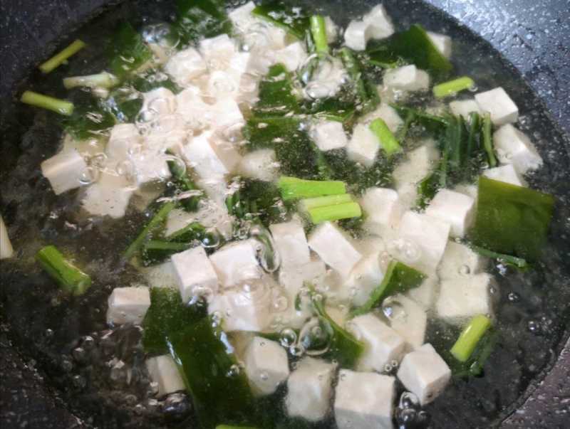 海带120g,嫩豆腐380g,小葱2根,食用油少许,盐适量,鸡精少许