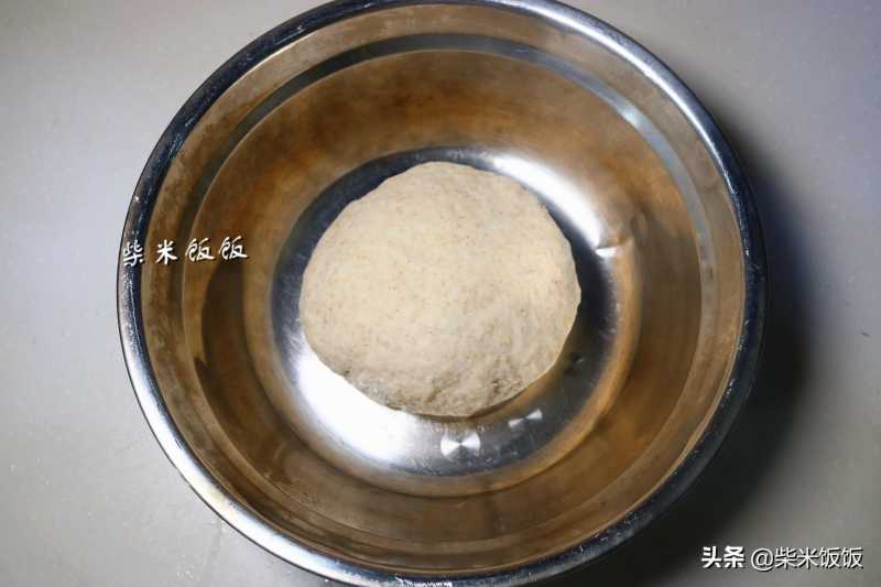 1,盆中倒入200克全麦面包粉,加入酵母2克,白糖10克。然后均匀地淋入120毫升的清水,揉成一个稍微偏软的面团。
